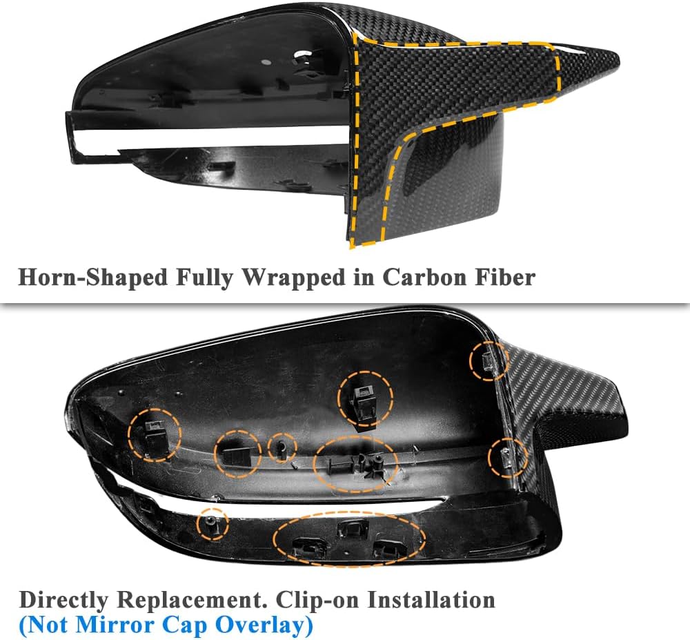 Constructed with a rigid ABS substrate for structural integrity, each mirror cover is wrapped in genuine carbon fiber and finished with a UV-resistant clear coat that locks in the deep gloss and protects against sun fade, discoloration, and weathering over time. The result is a lightweight, durable upgrade that delivers authentic carbon fiber aesthetics without compromising fitment or longevity.