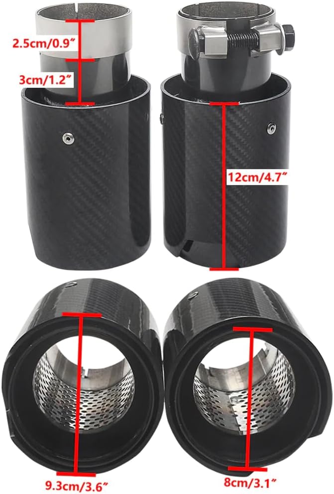 Upgrade your BMW M Performance vehicle with these premium Akrapovic carbon fiber style exhaust tips, expertly crafted from a combination of high-grade stainless steel and carbon fiber materials. Designed to fit a wide range of BMW M Performance models including the M135i, M235i, M140i, M240i, M335i, M340i, M435i, and M440i, these 63mm inlet tips deliver an aggressive, sporty aesthetic that perfectly complements your vehicle's performance character. Please verify your exhaust pipe outer diameter measures 60mm before ordering to ensure a proper fit.