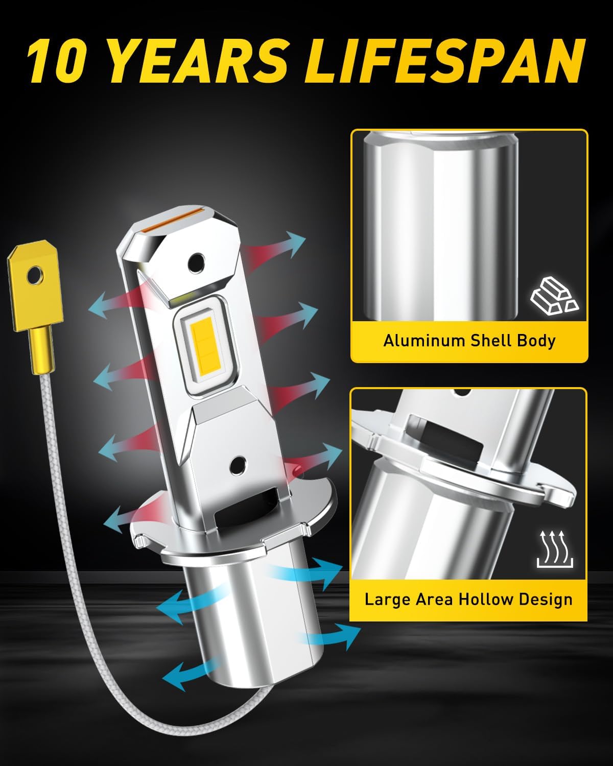 - All-aluminum body with copper substrate enables efficient heat dissipation and 10-year rated lifespan