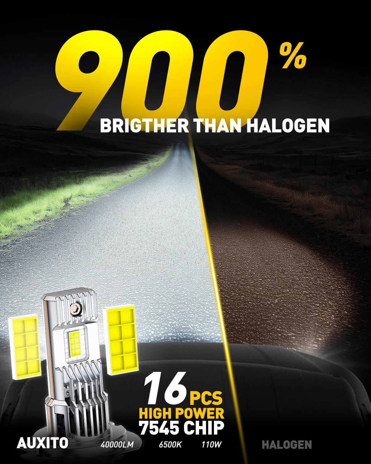 Heat is the enemy of LED longevity, and AUXITO addresses it with a built-in active cooling fan backed by a copper heat pipe core and aviation-grade aluminum construction. That combination pulls heat away from the LED array efficiently, keeping output stable over time rather than degrading the way cheaper units do after a few months of use. The result is a bulb that's built to last well beyond the halogen it replaces.