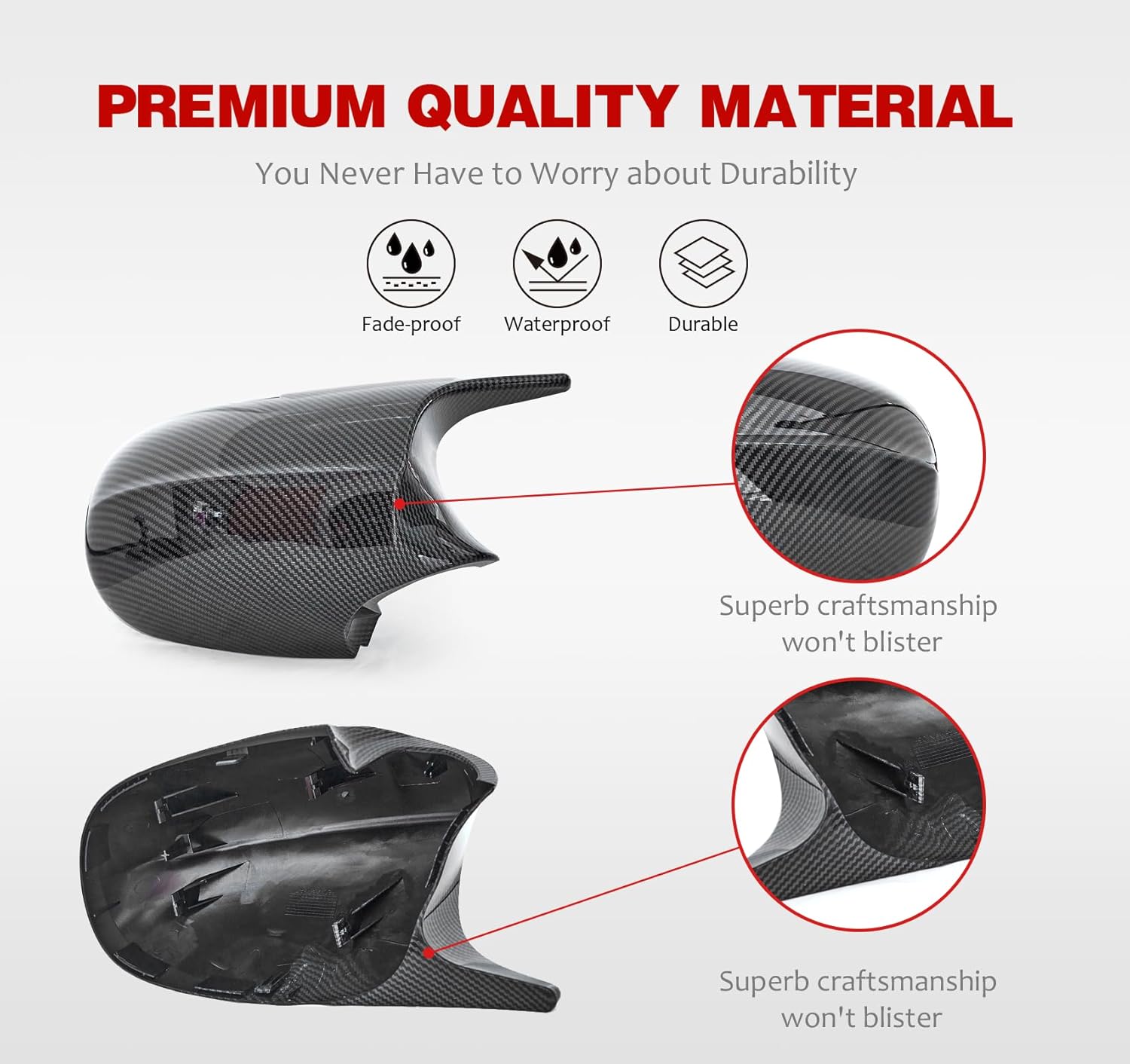 Built to last, these mirror covers are crafted from high-quality materials designed to withstand daily driving conditions while protecting your factory mirrors from chips, scratches, and wear. The precision-engineered fit ensures a snug, rattle-free installation that stays firmly in place without any modifications required — simply snap them on and enjoy the transformation.
