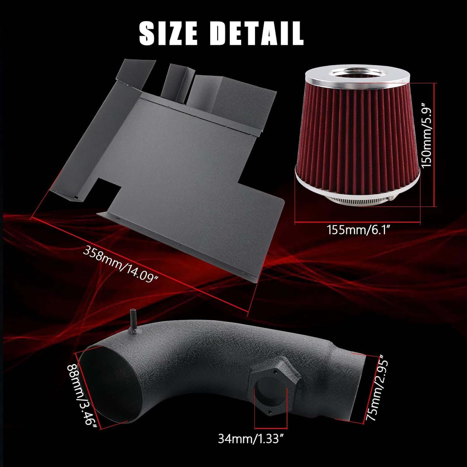 - High-flow aluminum intake pipe maximizes airflow volume and velocity to the engine