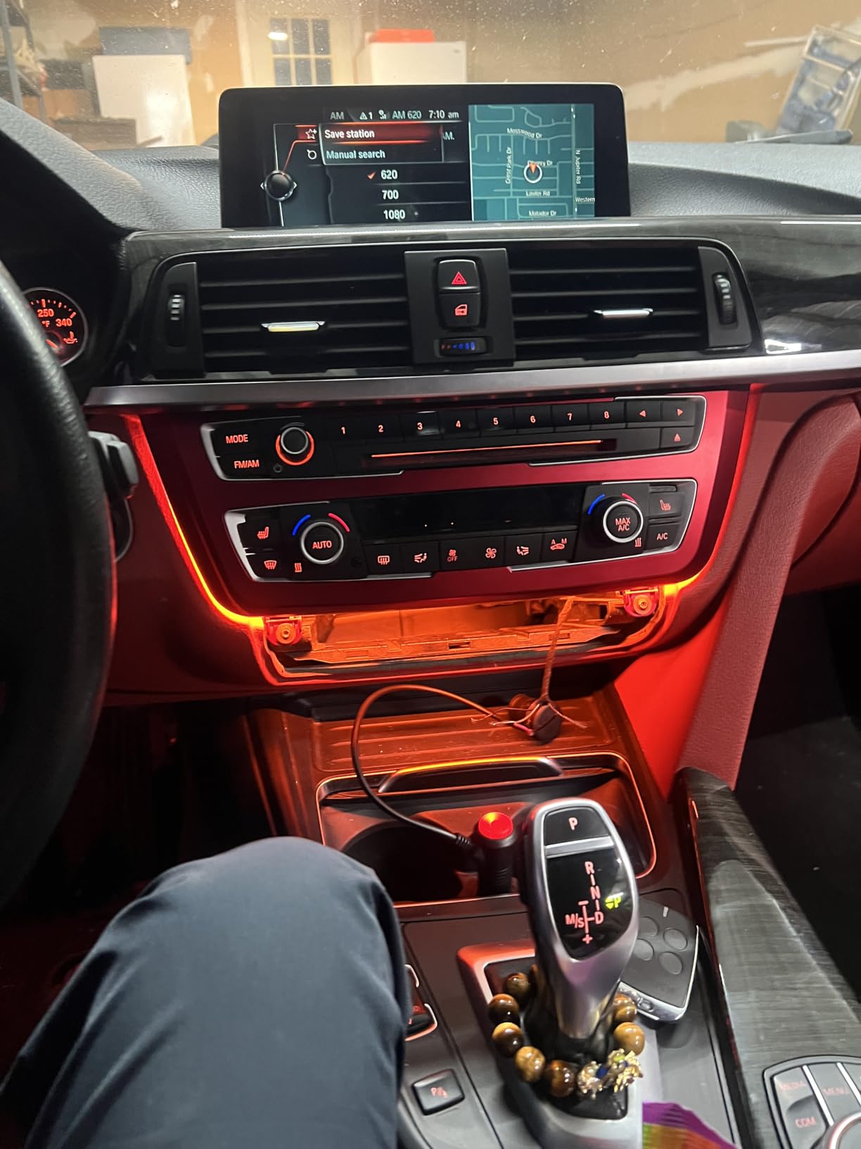 At the heart of the upgrade are 78 dual-color LED beads that integrate directly into BMW's existing iDrive ambient lighting system. If your vehicle already supports the two-color iDrive lighting option, the panel is genuinely plug-and-play — switch between warm orange and sport blue right from the center screen or dial brightness up and down using the headlight dimmer, just as you would with any factory control. Vehicles without the native two-color iDrive option will require a software upgrade to unlock full color-switching functionality; without it, the panel will illuminate in orange only.