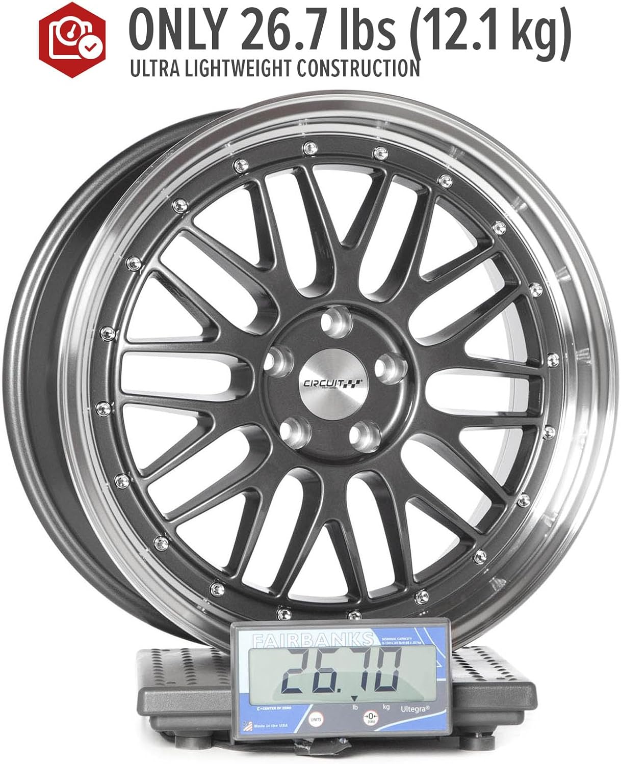 - Gloss Gun Metal finish with precision-machined lip for two-tone contrast