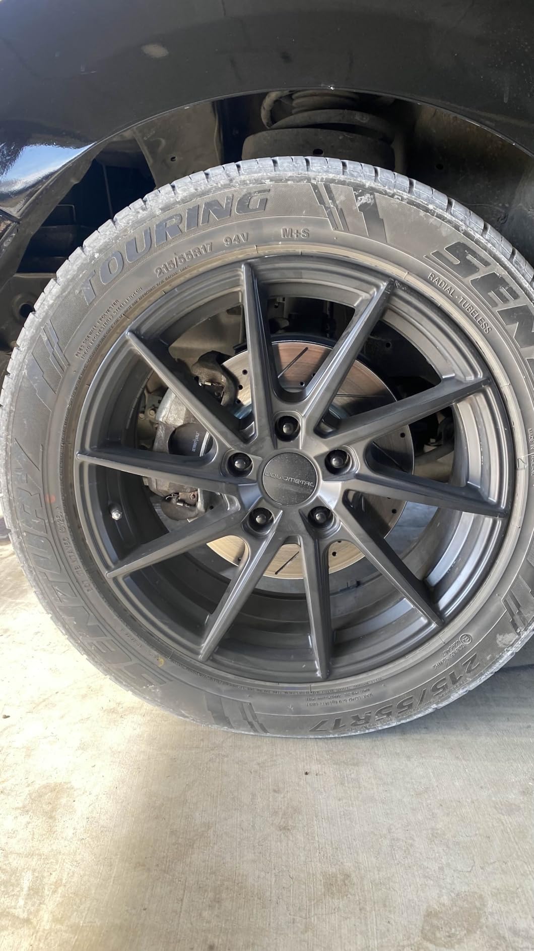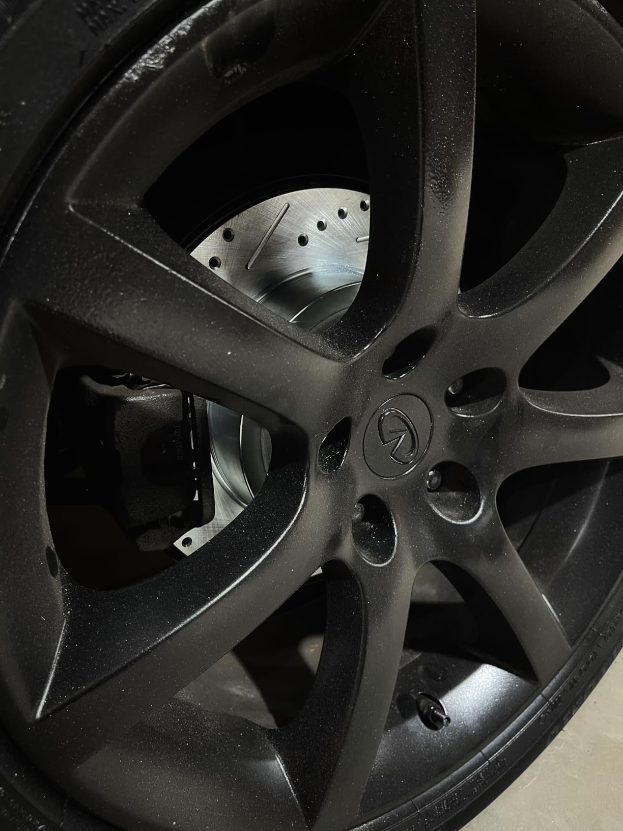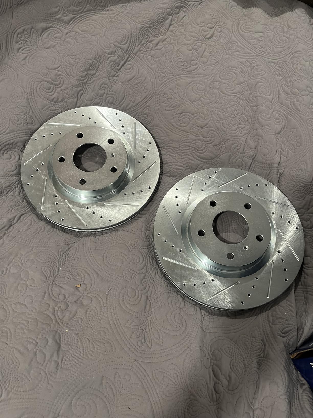 - Drilled and slotted rotor faces actively vent heat, gas, and debris under repeated hard braking