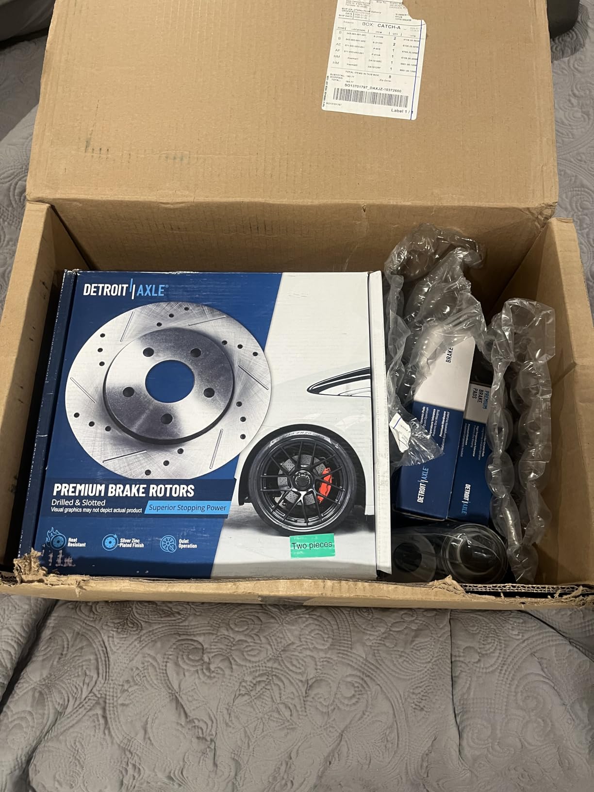 Dimensional accuracy is where budget brake kits often fail, and Detroit Axle addresses this directly — these rotors are built to exceed OEM specifications for hat depth, rotor thickness variation, and hub-bore diameter. Sloppy tolerances in any of those dimensions translate directly into pedal pulsation and vibration at speed, so getting them right matters. Every component in the kit undergoes impact, wear, and fatigue testing before it leaves the facility, and the entire package is covered by a 10-year warranty that's rare at this price point.