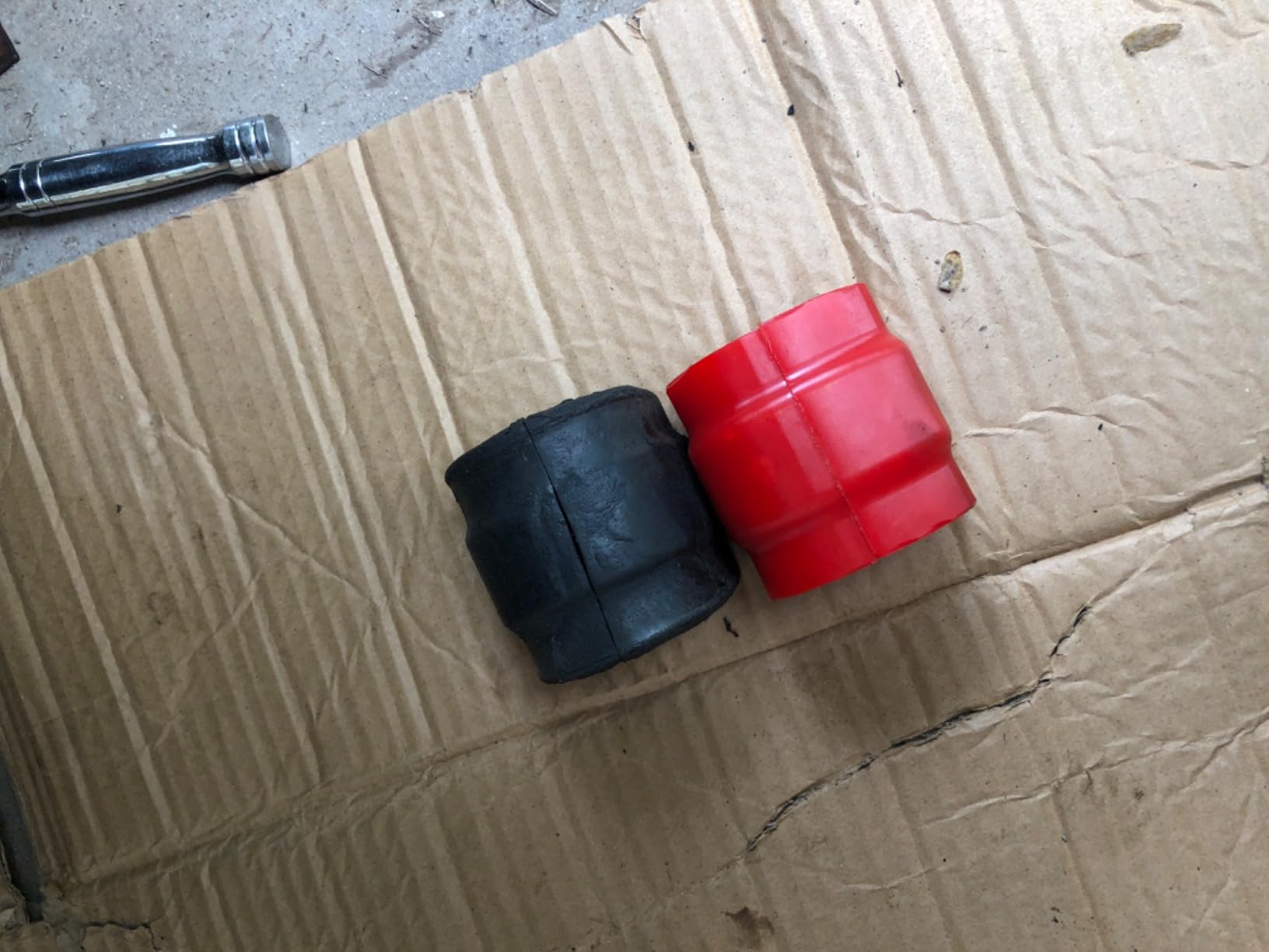 - Improves shock absorption while minimizing unwanted noise compared to worn factory rubber bushings