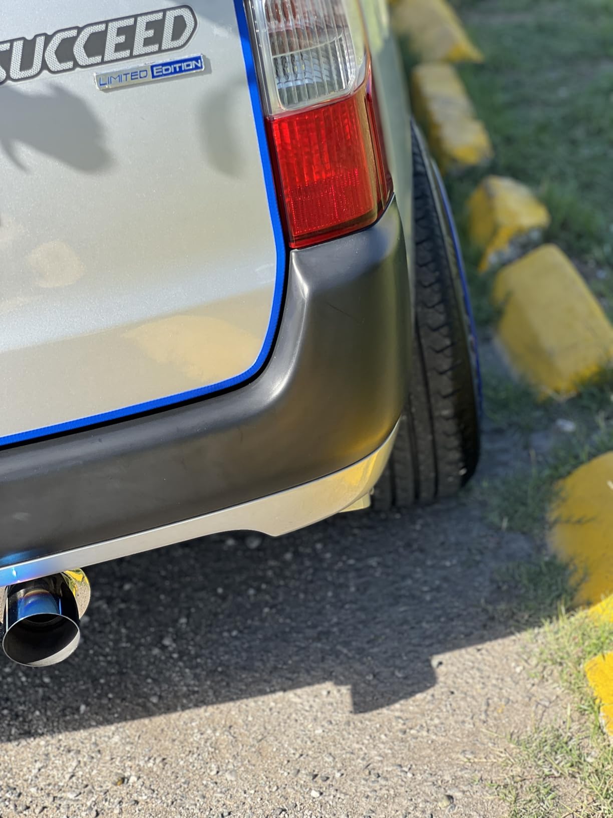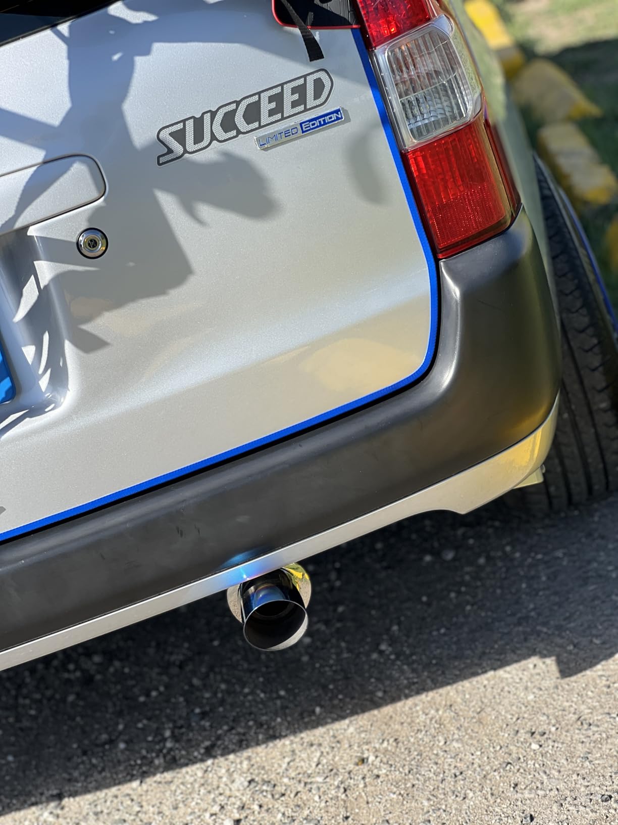 The burnt blue tip is the visual centerpiece. Rather than a painted or chrome finish that fades over time, the blue iridescent coloring on the outlet is the result of a heat-treatment process applied directly to the steel — which means it won't peel, chip, or wear off. It gives the rear of the car a purposeful, motorsport-influenced look that stands out without looking overdone.
