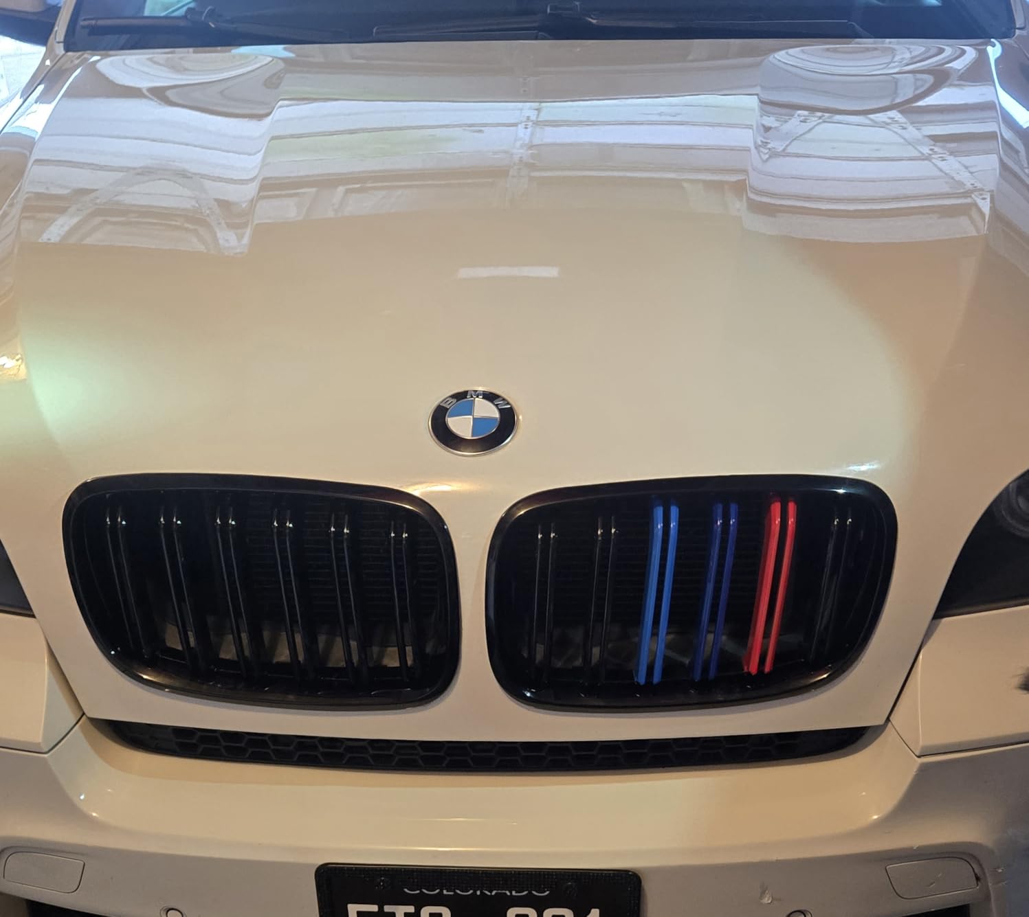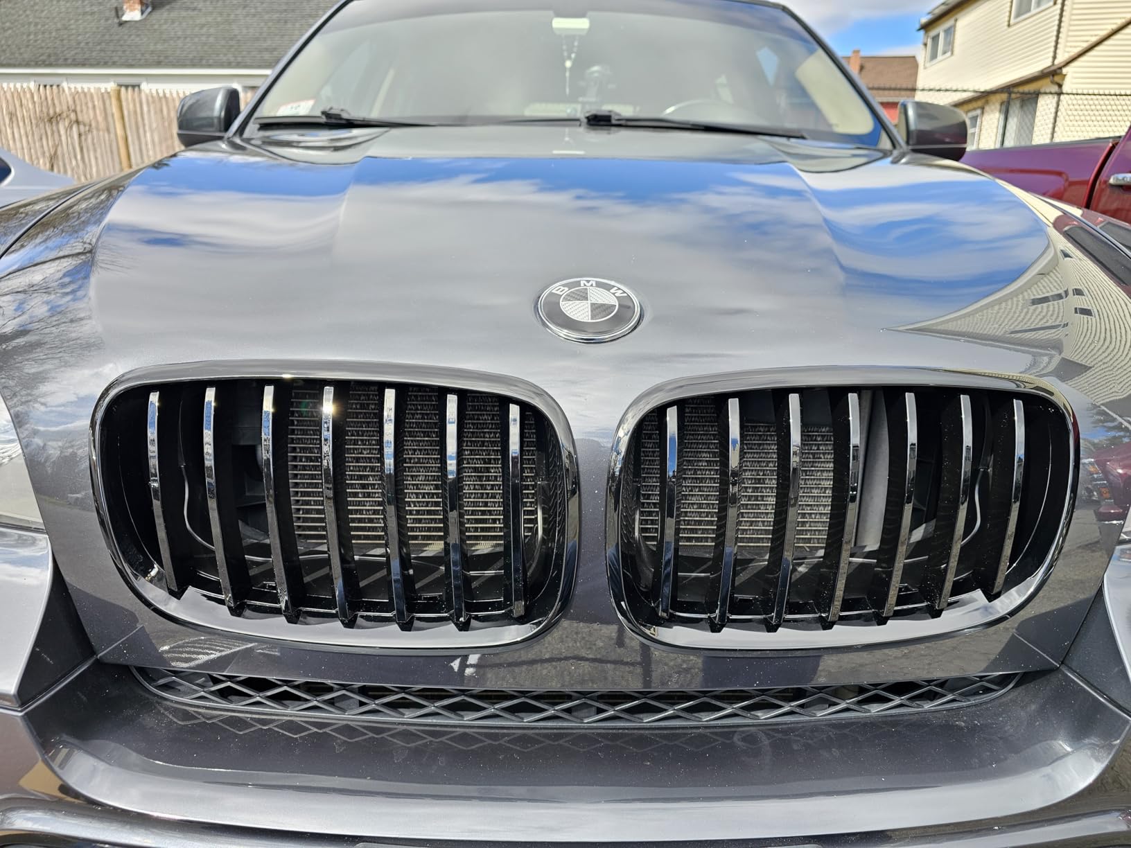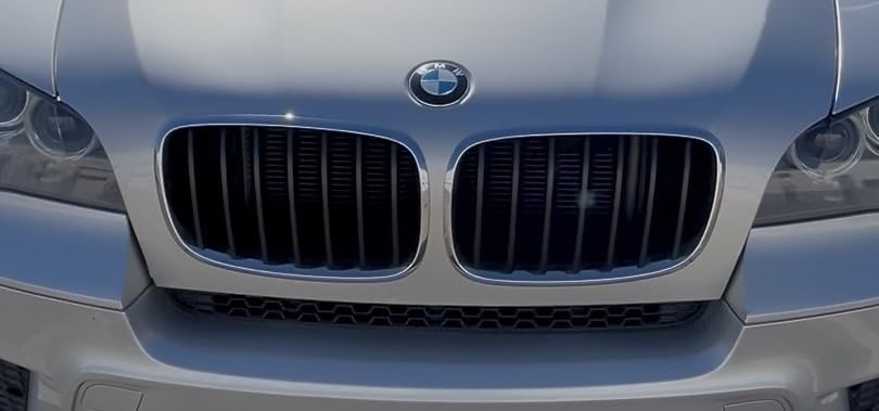 Front Bumper Kidney Grille Grill Glossy Black Compatible with 2007-2014 BMW X5 E70 X6 E71 Dual Slat Double Line