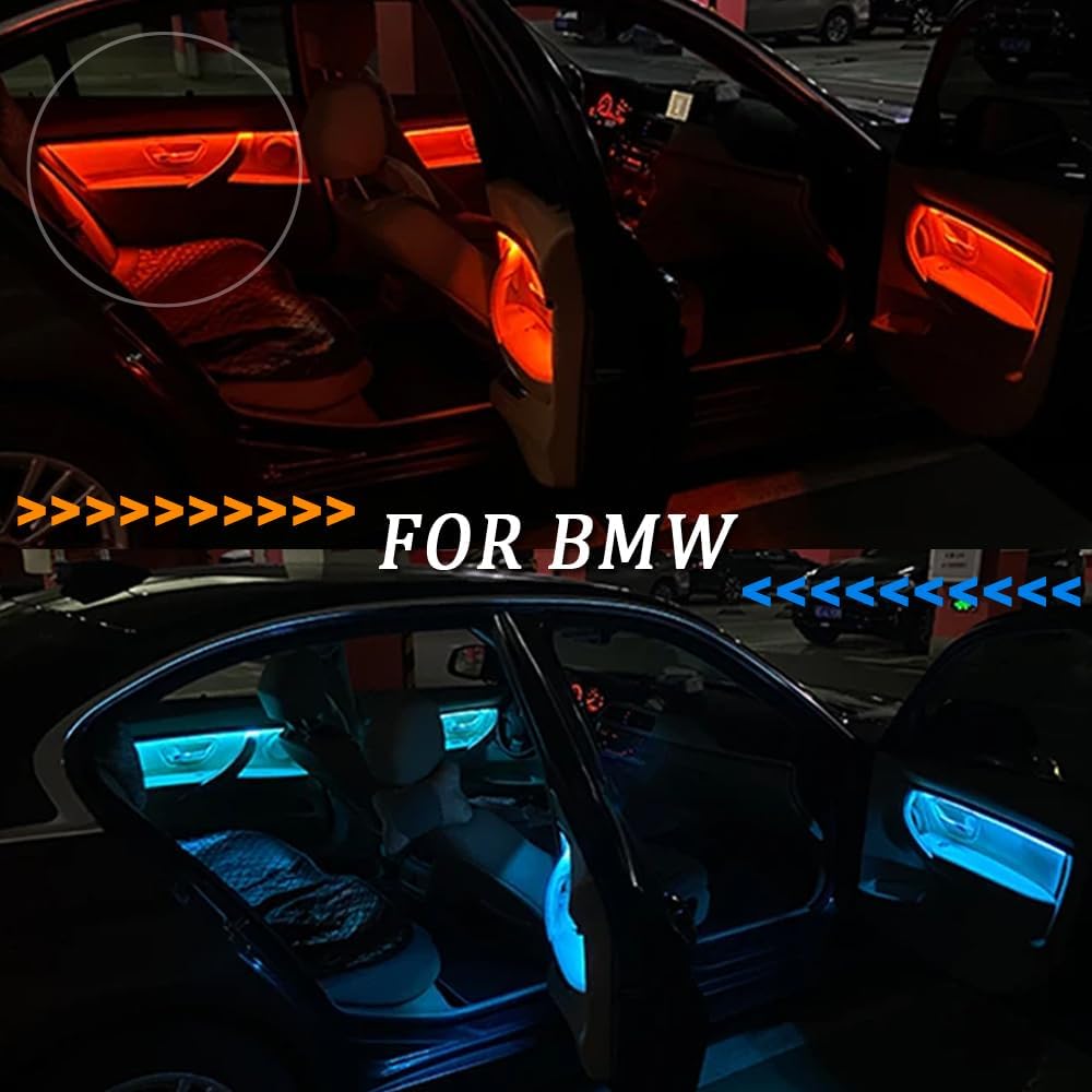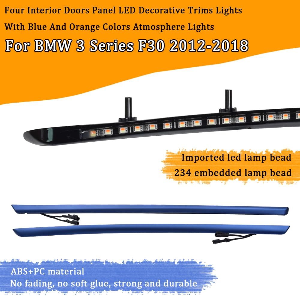 The lighting hardware itself is the real differentiator here. Each set packs 222 dual-color LED beads capable of producing both blue and orange illumination, giving you genuine flexibility over your cabin's atmosphere rather than locking you into a single static color. Brightness is adjusted directly through your car's existing central control display, so there's no secondary app, no inline dimmer switch, and no clutter — just a clean, integrated experience that feels native to the iDrive ecosystem.