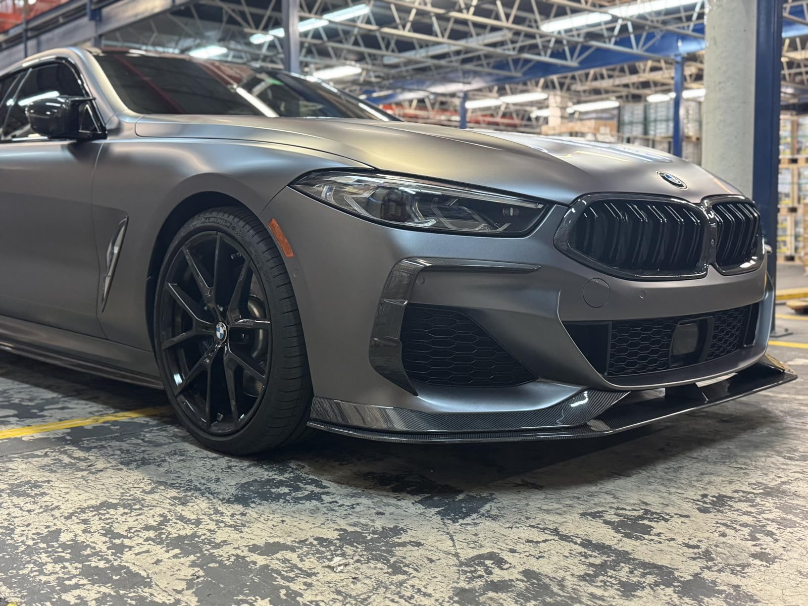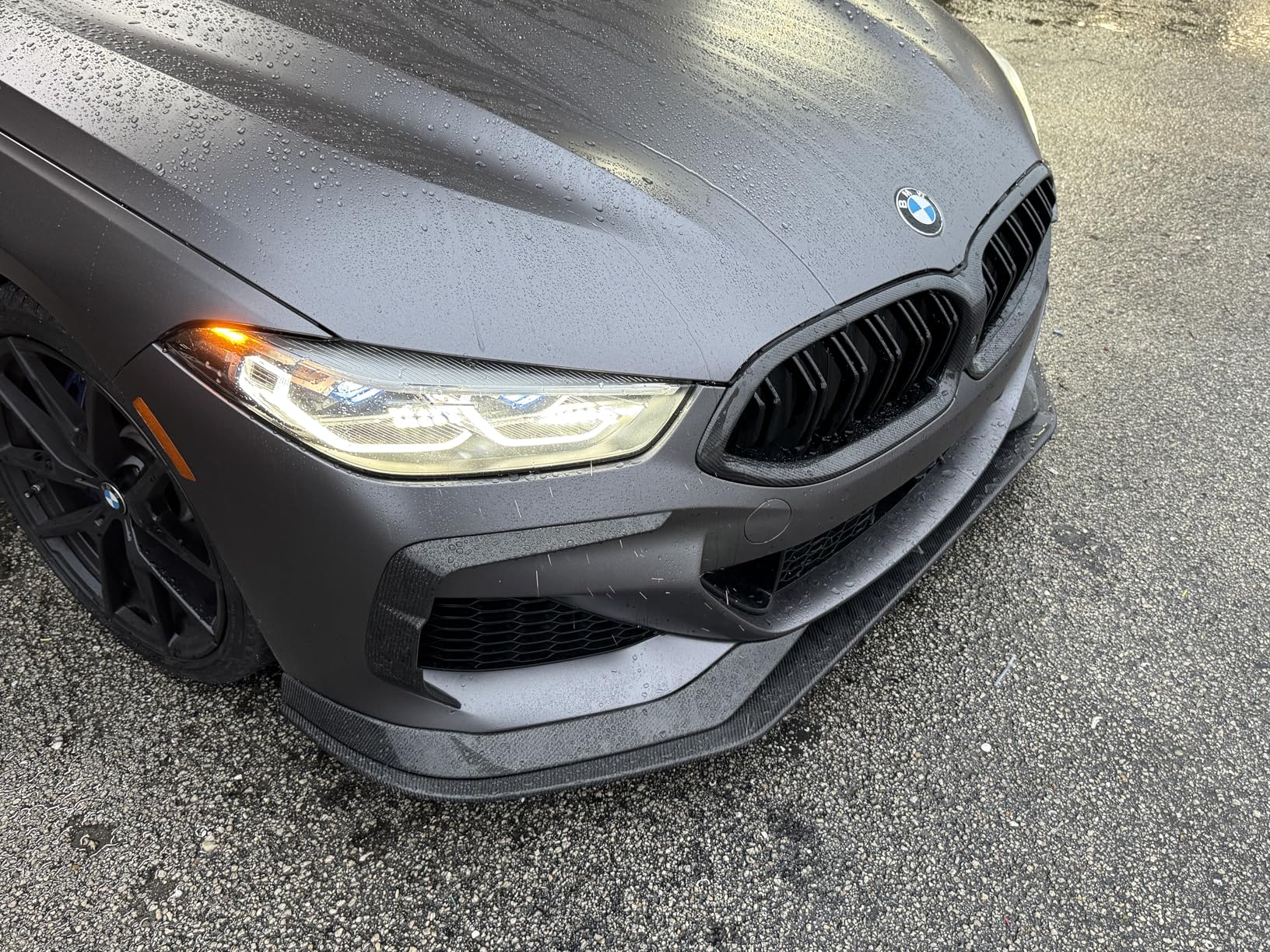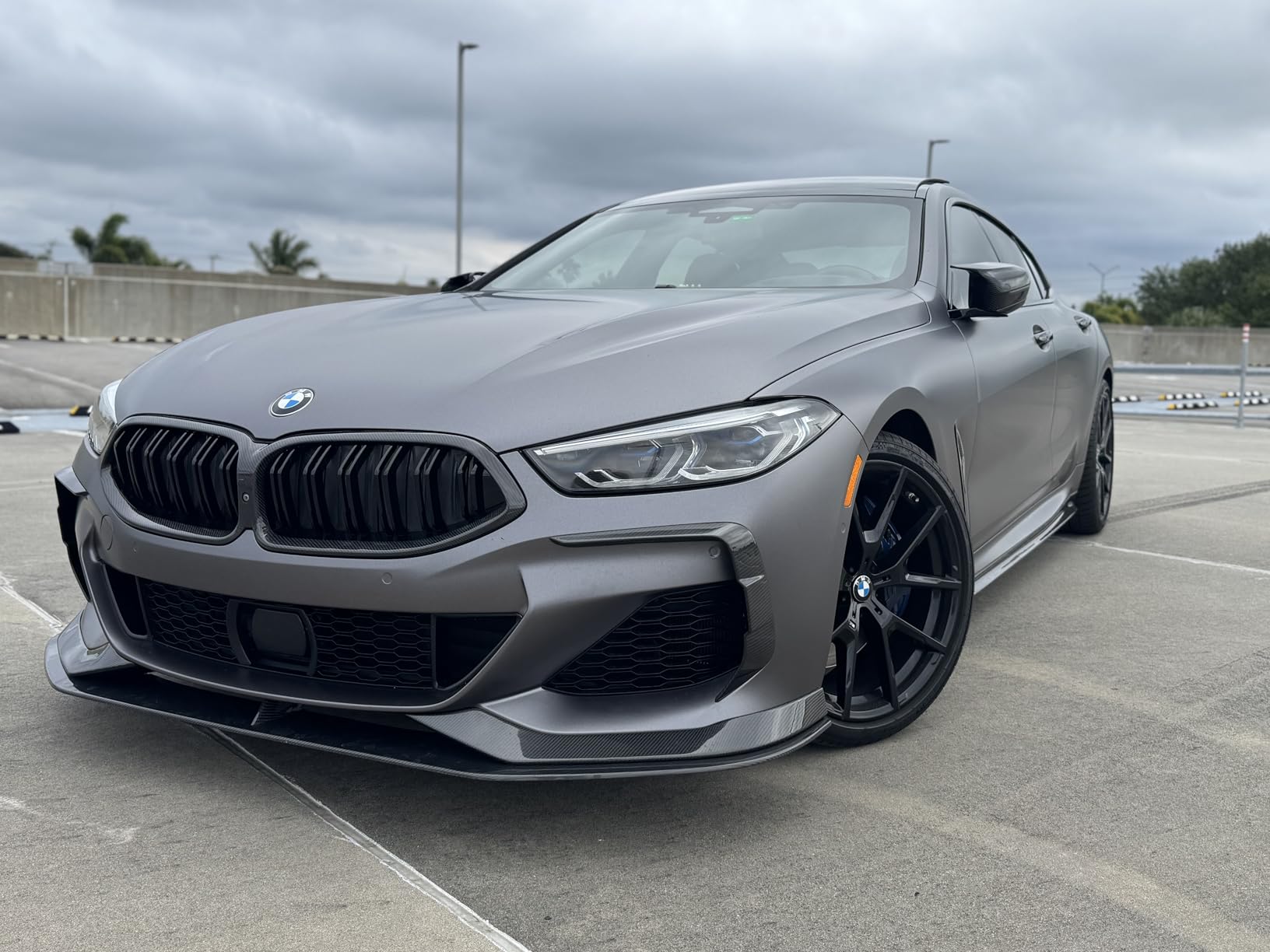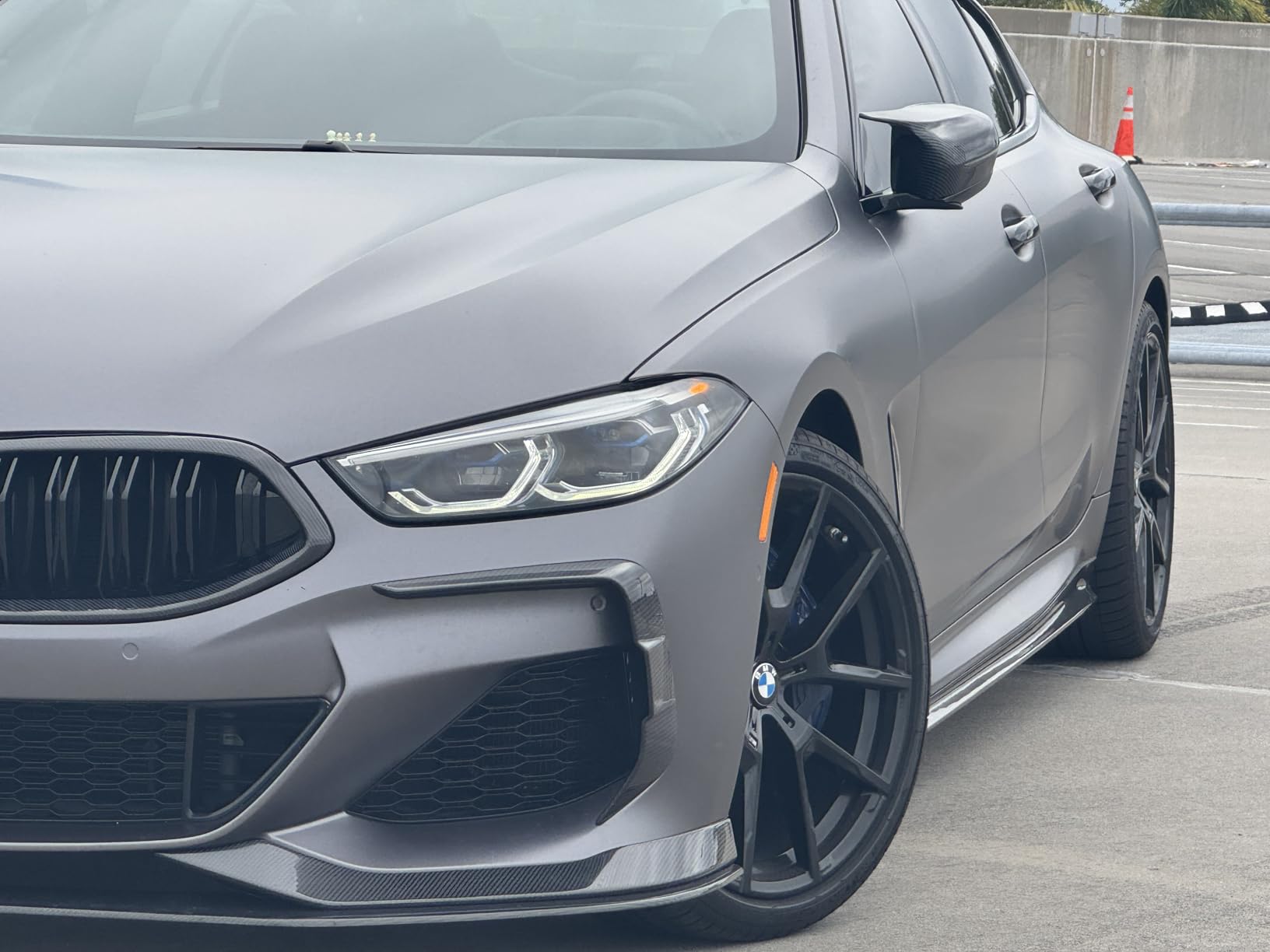 Beyond aesthetics, the lower front lip geometry works to redirect airflow more efficiently beneath the car, reducing front-end lift and adding a measurable degree of downforce at speed. The result is a front end that not only looks planted — it actually behaves that way. Combined with the sharper visual profile the lip creates at the nose of the 8 Series, the upgrade reads as factory-intentional rather than an afterthought.