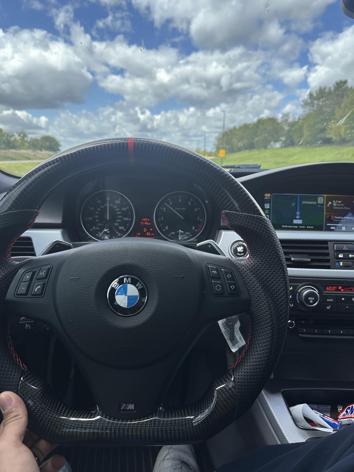 Nappa Leather & Carbon Fiber Steering Wheel Cover — BMW