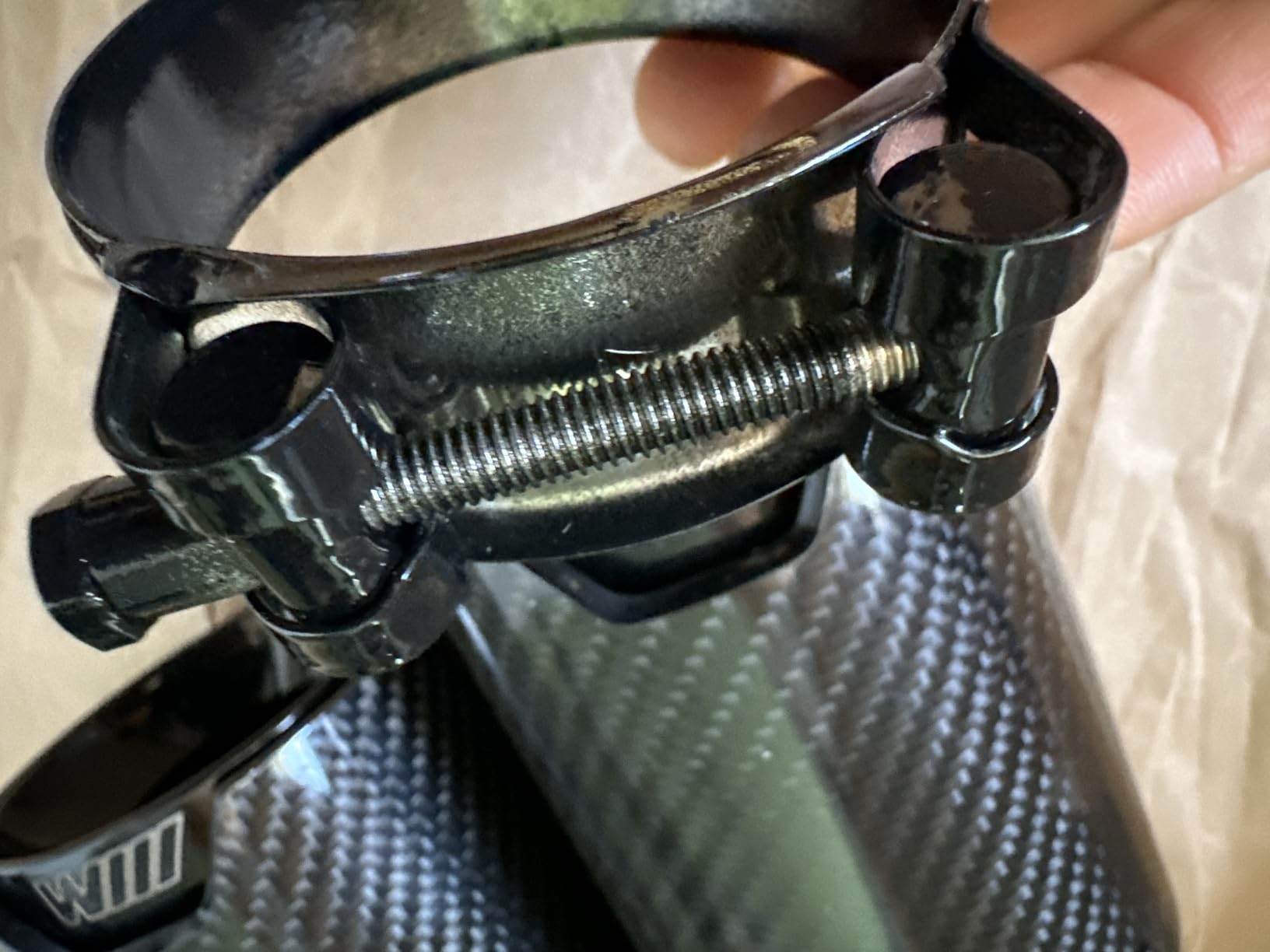 The construction is worth paying attention to. The outer shell is genuine high-gloss carbon fiber — lightweight and visually sharp — while the inner layer is stainless steel finished in a heat-resistant black coating. That combination isn't just aesthetic: stainless steel handles exhaust heat and corrosion where carbon fiber alone wouldn't hold up long-term. Integrated sound-absorbing holes built into the internal structure help knock down drone and resonance, giving the exhaust note a slightly more composed character without any additional hardware.