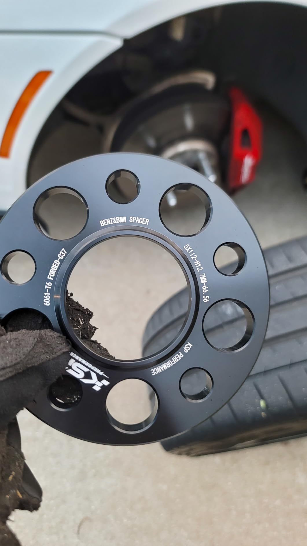 Fitment precision is where these stand apart from generic slip-on designs. KSP's in-house engineers measured OEM G-chassis hub and bore dimensions directly, landing on a 66.56mm center bore with a retaining lip that seats flush against the hub with minimal clearance. That tight, hubcentric interface is what eliminates the vibration and steering shimmy common with non-hubcentric or oversized-bore spacers — your BMW drives exactly as BMW intended, just wider.