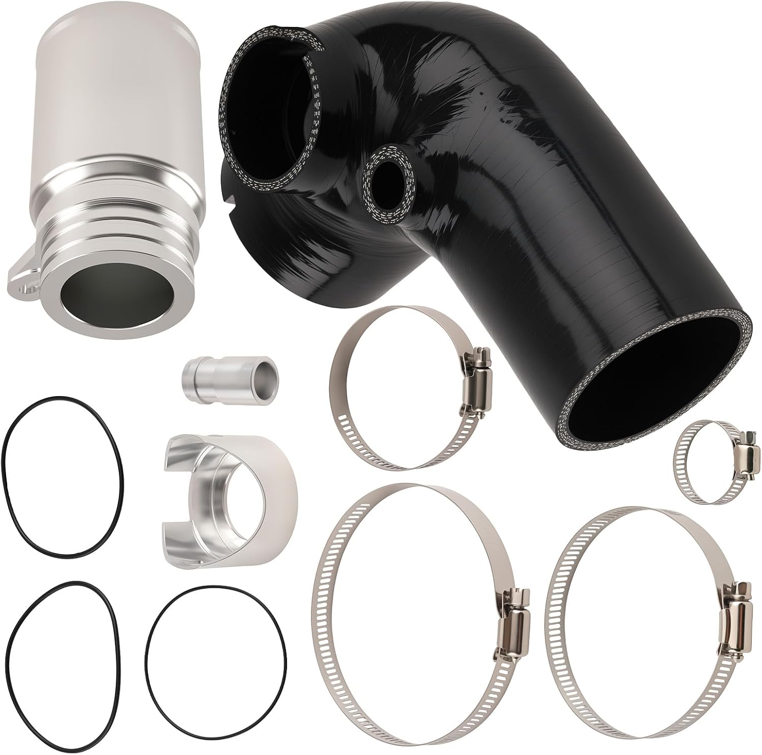 - Cast aluminum construction replaces failure-prone OEM plastic inlet pipe