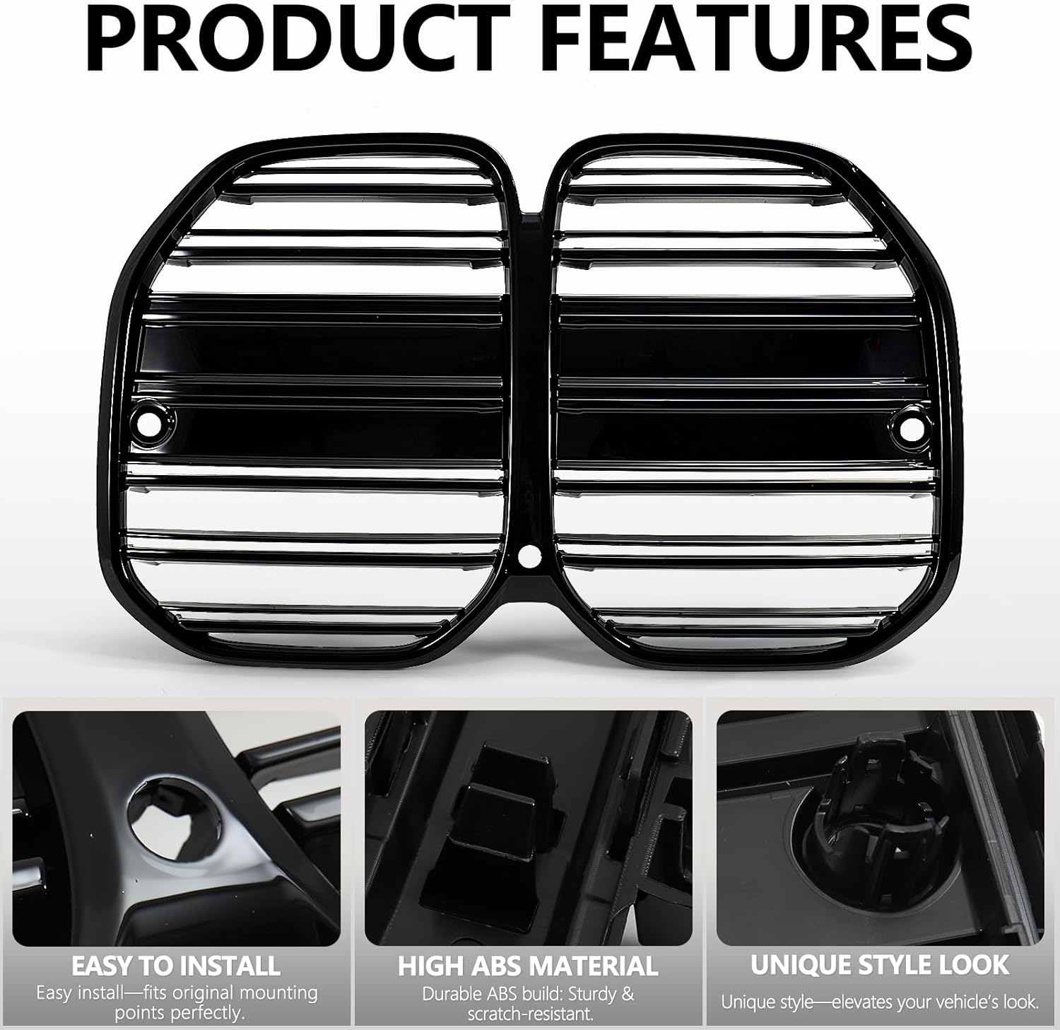 Upgrade the front fascia of your BMW 4 Series with this OSNLEW Gloss Black Kidney Grille, engineered specifically for G22 and G23 chassis models including the 430i and M440i from 2021 through 2024. The bold gloss black finish delivers a aggressive, blacked-out aesthetic that sets your 4 Series apart from the factory look while maintaining the iconic BMW kidney grille silhouette enthusiasts expect.