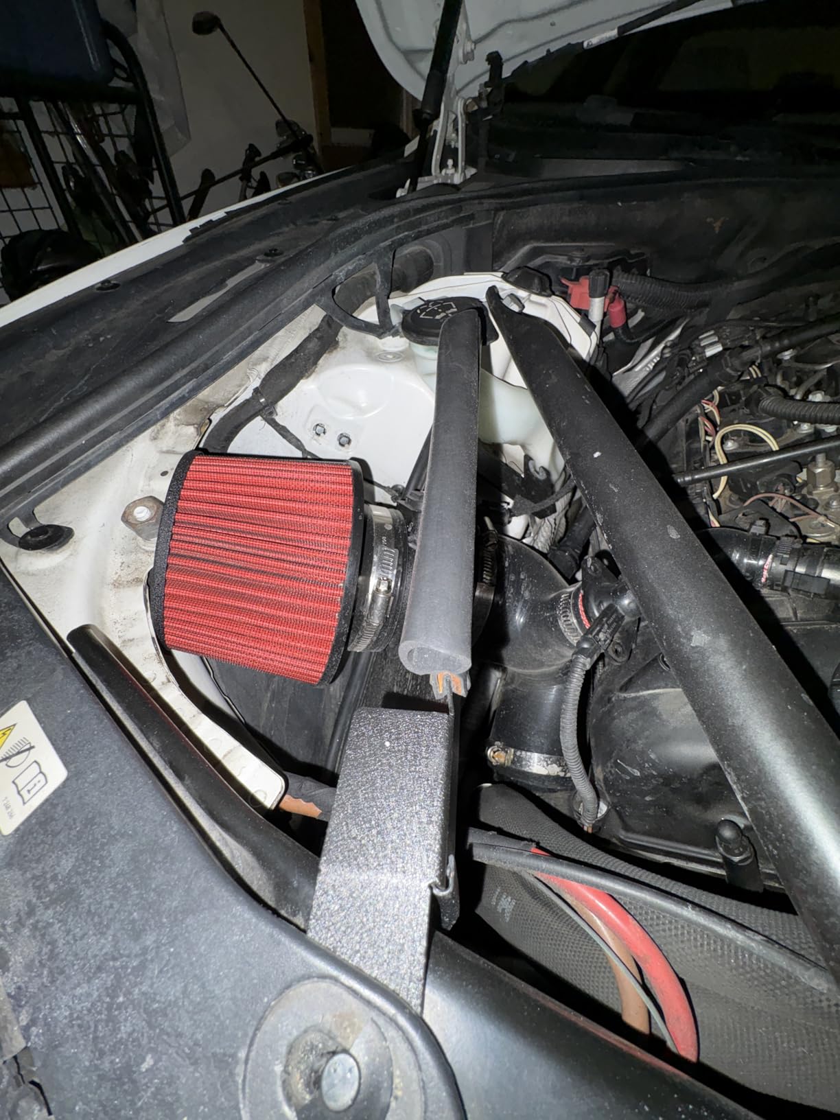 The conical filter geometry is the heart of this system. By dramatically increasing the available filtration surface area compared to the flat panel OEM filter, the PTNHZ intake sustains strong airflow even as engine demand climbs through the rev range. Cooler air drawn from outside the engine bay is denser than the heat-soaked air surrounding the stock airbox, which means the N55's turbocharger has better raw material to work with on every pull. The byproduct is a more aggressive induction sound that matches the character of a performance-tuned 535i.
