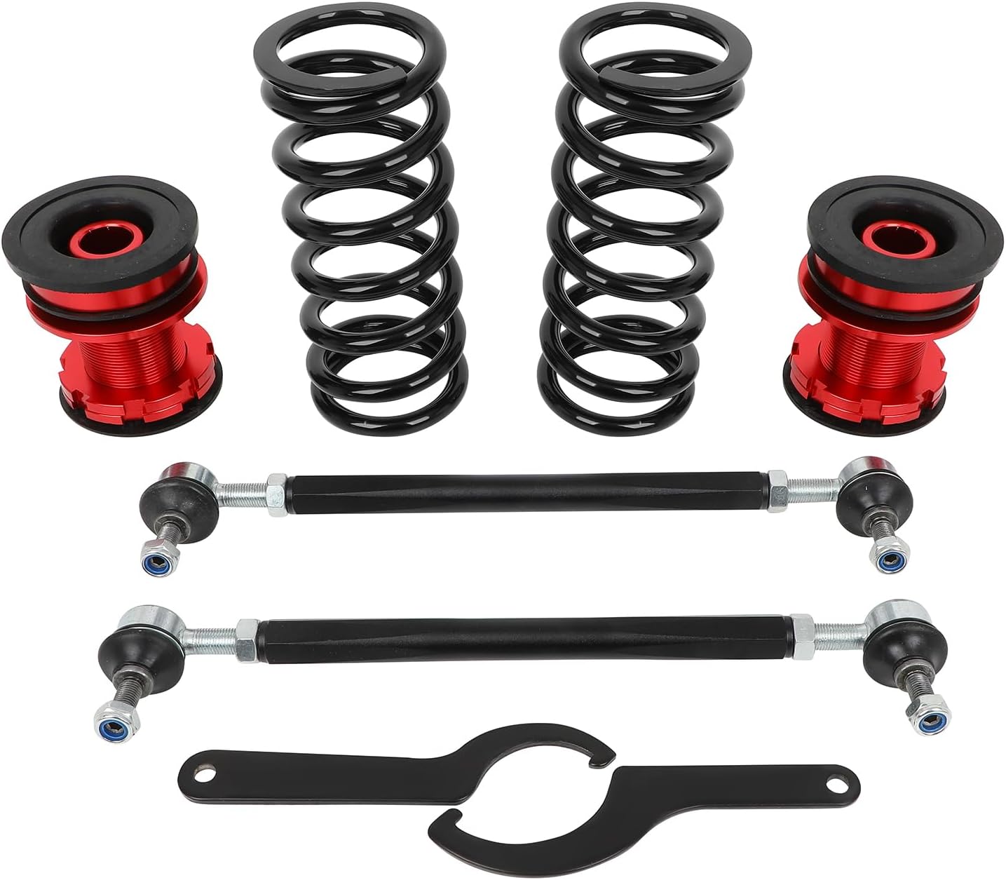 Upgrade your BMW 1 Series handling and stance with the TFGCSG Height Adjustable Coilover Suspension Kit, engineered specifically for the 2008-2013 128i, 135i, and 2013 135is. This complete lowering kit replaces your factory suspension with a performance-tuned twin-tube coilover system, giving you the ability to fine-tune ride height to match your driving style and aesthetic preferences. Whether you're building a track-ready machine or a stylish daily driver, this kit delivers a noticeable improvement over stock suspension in both feel and function.