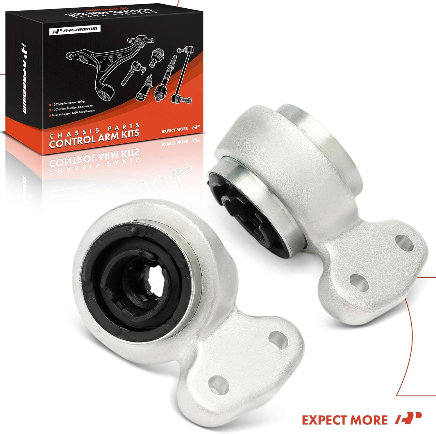 - Set of 2 front lower rearward control arm bushings for complete left and right side replacement