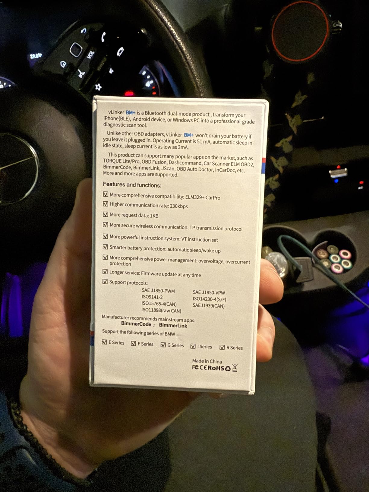 Vgate vLinker BM+ OBD2 Bluetooth Scanner — BMW/Mini BimmerCode — Overview
