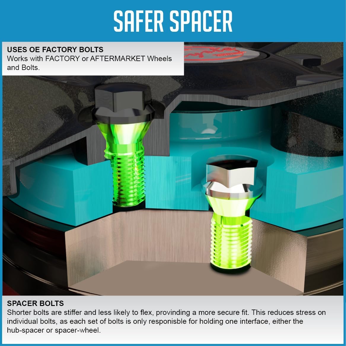 - Includes 5 short-head acorn bolts (spacer-to-hub) and 5 M14x1.5 acorn lug bolts (wheel-to-spacer)
