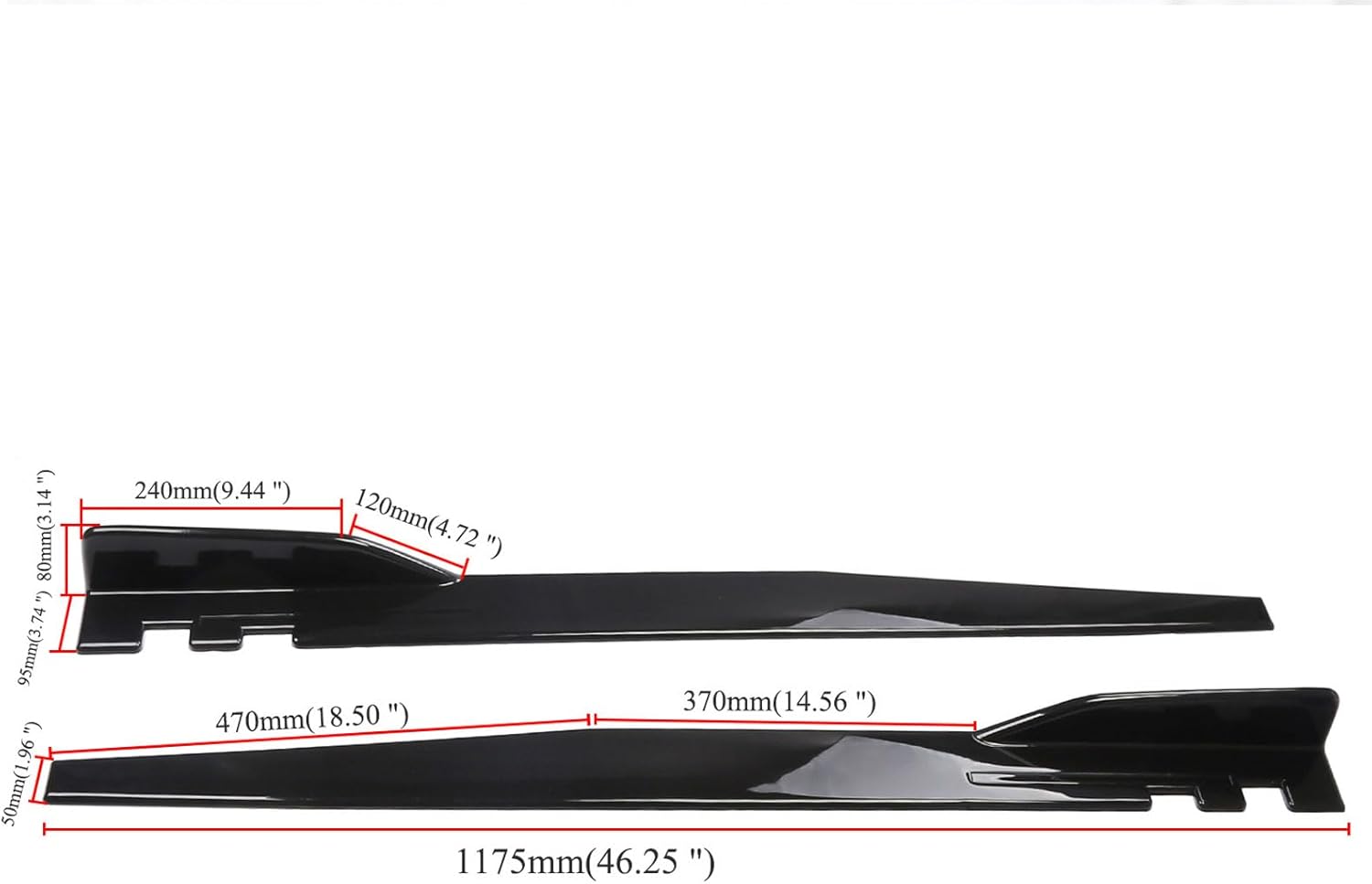 Constructed from high-quality impact-resistant and heat-tolerant materials, these side skirts are built to withstand the rigors of daily driving and varying weather conditions. Installation is straightforward with a flexible fitment design that resists cracking and bending over time. The extensions can also be trimmed as needed to perfectly match your vehicle's rocker panel length, ensuring a clean and custom-looking finish every time.